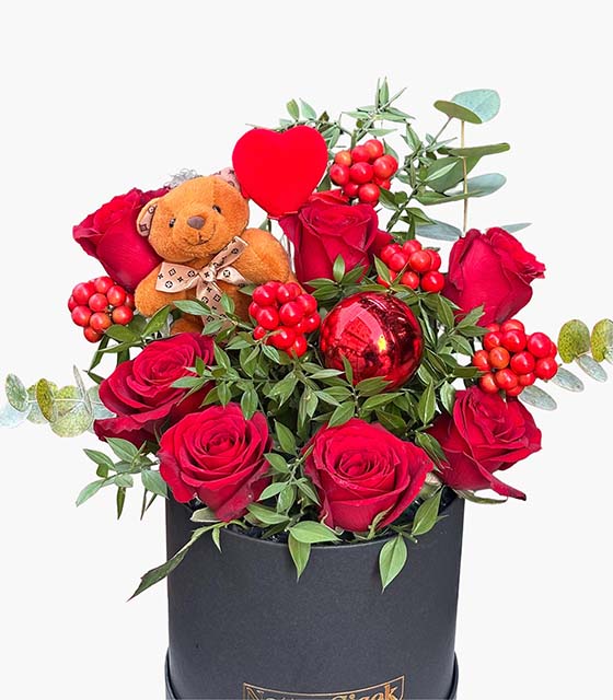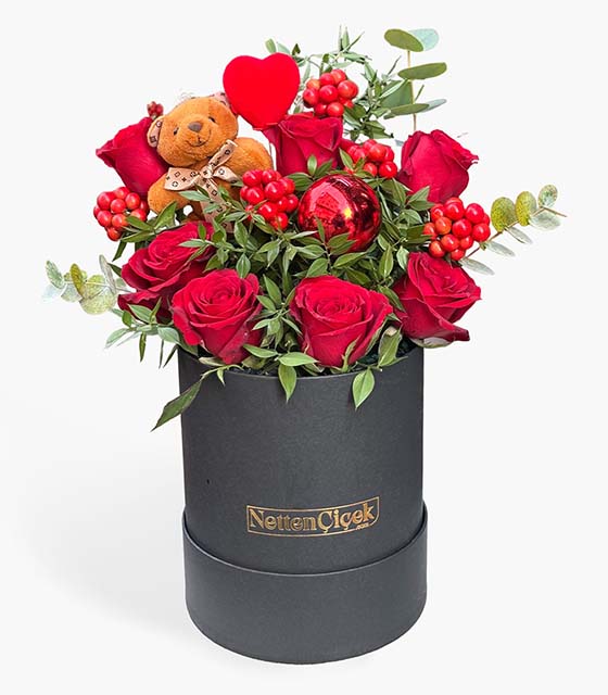 şkın Masalı Yeni Yıl Gül Kutusu, yılbaşının neşesini ve aşkın tutkusunu aynı aranjmanda buluşturan özel bir tasarımdır.