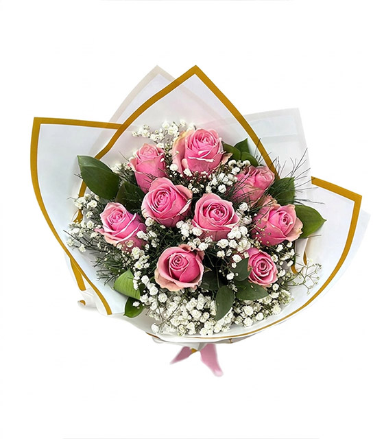 Zarafetin ve sevginin en tatlı hâli… Pembe Düş Buketi, taze pembe güllerin beyaz cipsofilyalarla buluştuğu, romantik ve zarif bir aranjmandır. Özenle seçilen çiçekler, beyaz sargı kâğıdı ve altın yaldızlı kenar detaylarıyla şık bir şekilde hazırlanmıştır.