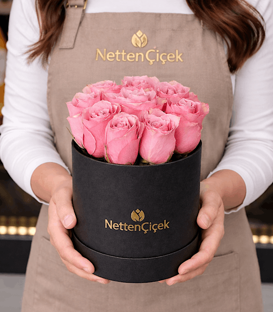 Premium Siyah Kutuda 9 adet Pembe Gül Tasarımı