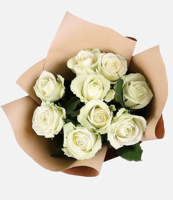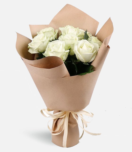 İthal beyaz güller ile hazırlanan 9 adet beyaz gül buketi