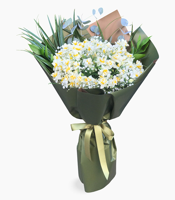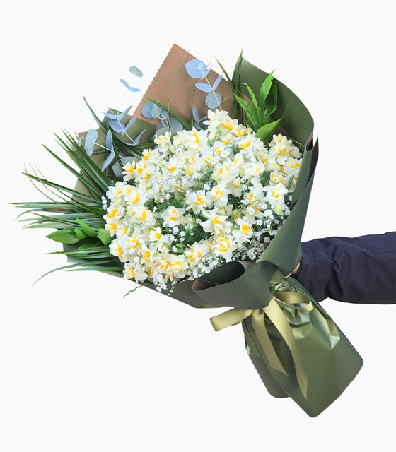 Mis kokulu nergis çiçekleri ile hazırlanan 40 dal nergis çiçeği buketi