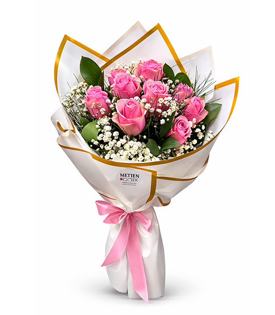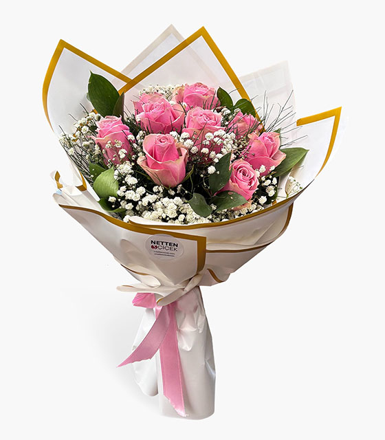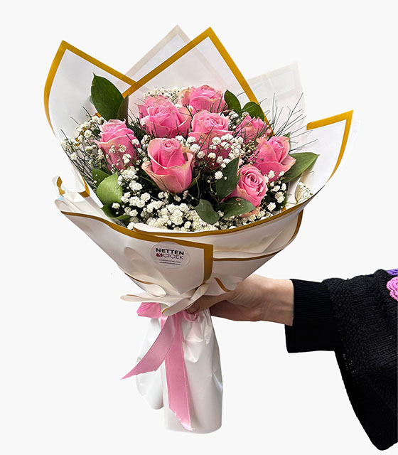 Zarafetin ve sevginin en tatlı hâli… Pembe Düş Buketi, taze pembe güllerin beyaz cipsofilyalarla buluştuğu, romantik ve zarif bir aranjmandır. Özenle seçilen çiçekler, beyaz sargı kâğıdı ve altın yaldızlı kenar detaylarıyla şık bir şekilde hazırlanmıştır.