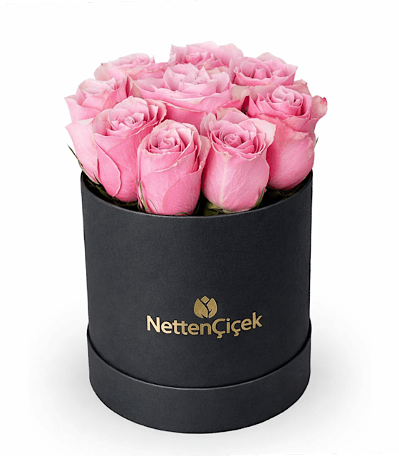 Premium Siyah Kutuda Pembe Gül Tasarımı