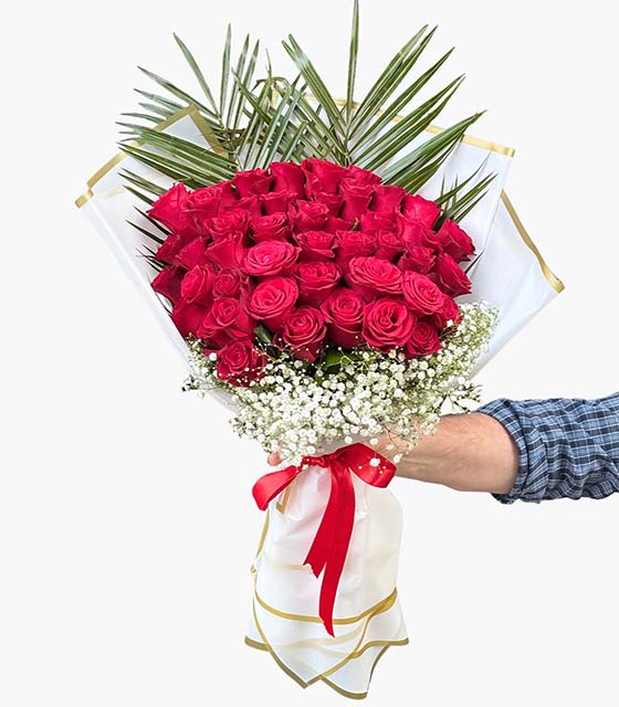 41 adet taze kırmızı gülden oluşan bu özel buket, sevgi, tutku ve sadakatin en zarif ifadesidir. Şık beyaz ambalajı, altın detayları ve kırmızı kurdelesiyle göz kamaştıran tasarım; cipsofilya ve yeşil yapraklarla zenginleştirilmiştir. Sevgilinize, eşinize ya da özel günlerde sevdiklerinize duygularınızı en şık şekilde iletmek için mükemmel bir tercihtir.